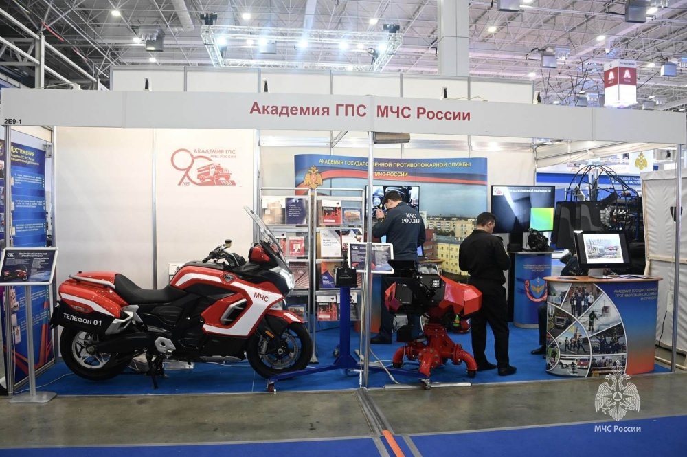 На стенде Академии ГПС МЧС России представлены техника и технологии, разработанные при участии коллектива вуза. Это и ультрасовременный пожарно-спасательный автомобиль, представляющий собой сочетание перспективных технологий, эргономичного дизайна, энергоемких решений, информационноаналитических систем поддержки принятия решений на месте чрезвычайных ситуаций; пожарно-спасательный электромотоцикл, предназначенный для оперативного прибытия личного состава пожарно-спасательных подразделений МЧС России и доставки к месту вызова специализированных средств и оборудования для проведения пожарно-спасательных работ в условиях высокой плотности транспортного потока на дорогах общего пользования; компактный пожарный многофункциональный лафетный ствол с дефлекторным насадком для формирования струй воды, водных растворов поверхностно-активных веществ (в том числе любых пенообразователей и смачивателей), порошков и газонаполненной пены, полученной компрессионным методом. Также на стенде Академии представлена первая версия шлема дополненной реальности, предназначенного для получения оперативной информации в режиме реального времени и повышения ситуационной осведомленности спасателей, и другие разработки и исследования сотрудников и адъюнктов Академии.