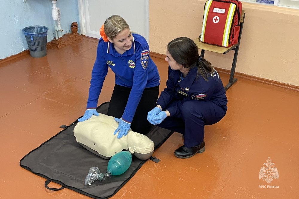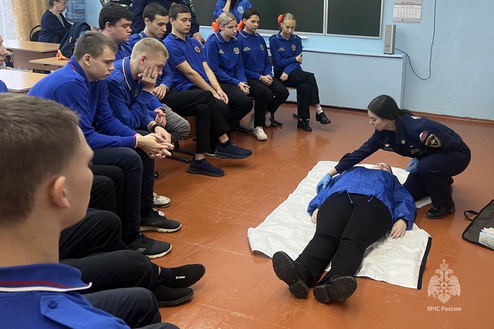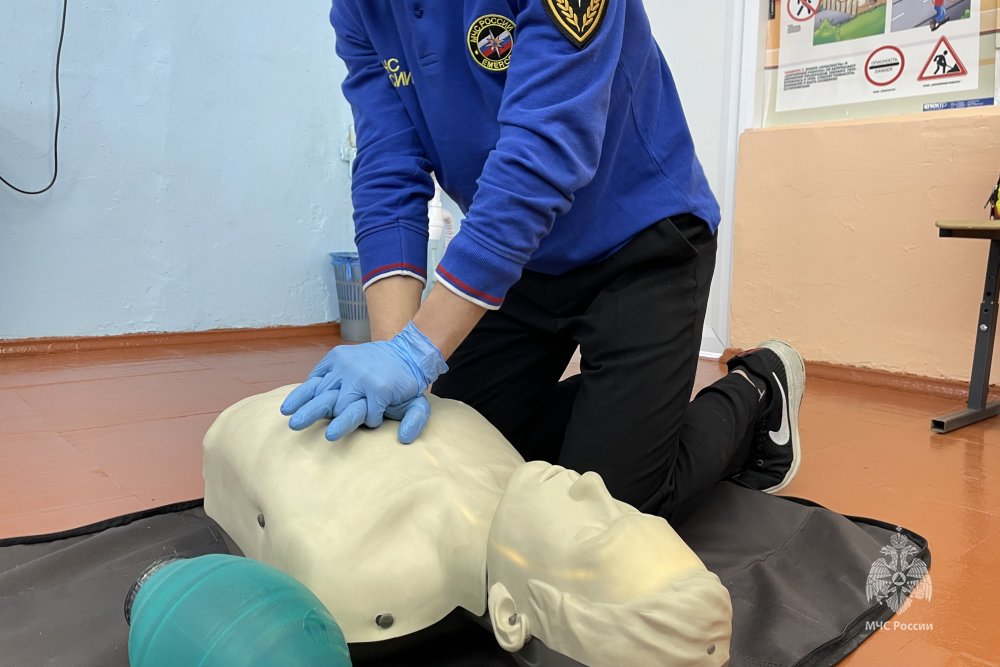 После теоретической части, школьники приступили к отработке практических навыков по проведению сердечно-легочной реанимации, приданию пострадавшему устойчивого бокового положения и оказанию помощи при различных видах кровотечений.