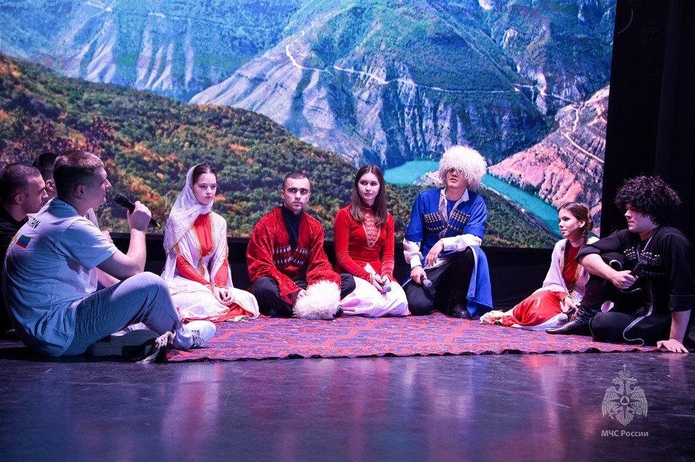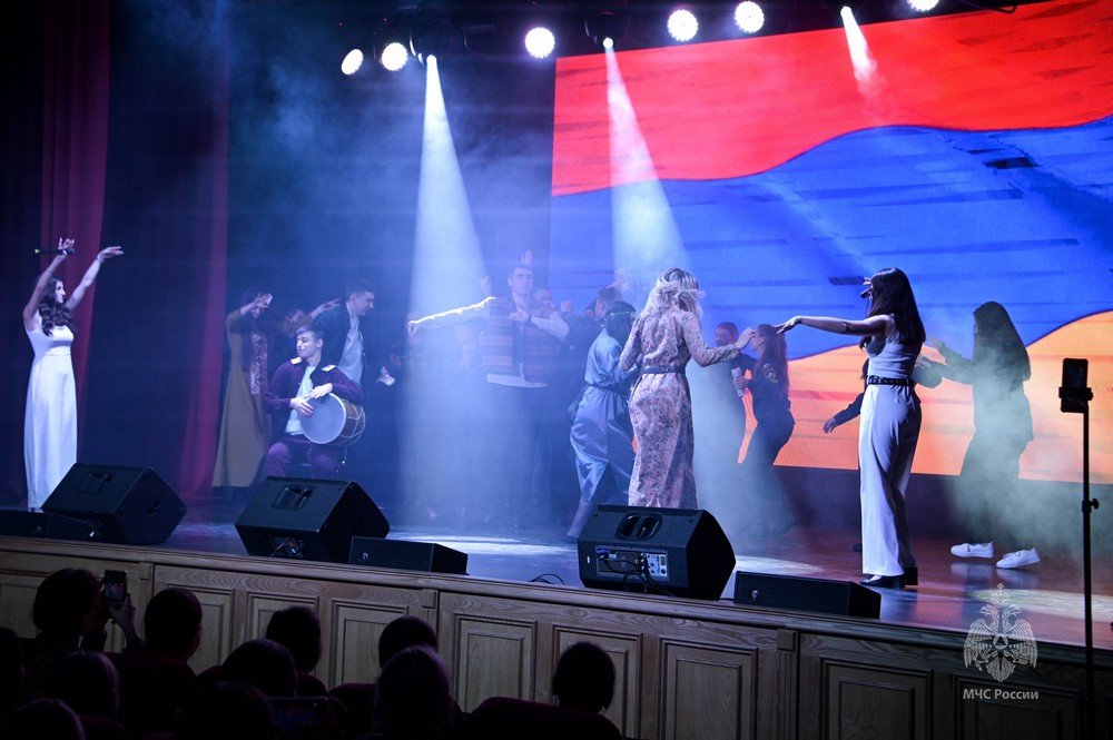 Курсанты и студенты в концертной программе ярко продемонстрировали особенности культуры народов разных регионов России – Северной Осетии, Татарстана, Дагестана, Кабардино-Балкарии, а также стран Армении и Абхазии. Национальный колорит и энергия воплотились в музыкальных и танцевальных произведениях.