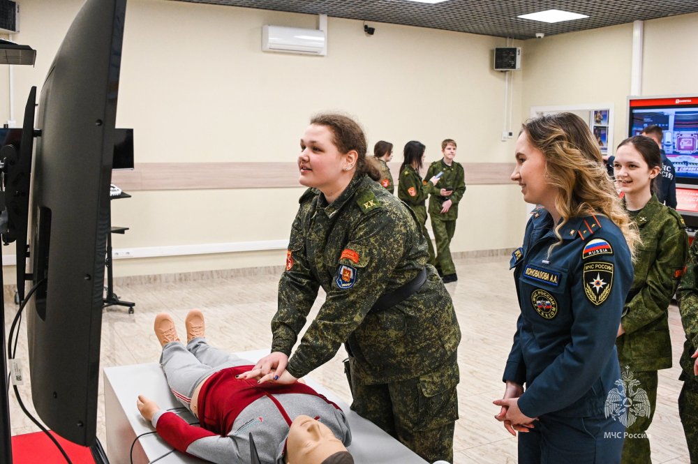 В рамках практической составляющей кадеты познакомились с пожарно-спасательной техникой и снаряжением. Работали на интерактивных тренажерах в учебно-тренировочном комплексе Академии, который оснащен классом тактико-психологической подготовки участников тушения пожара, криминалистическим полигоном, интерактивными тренажерами и манекенами.