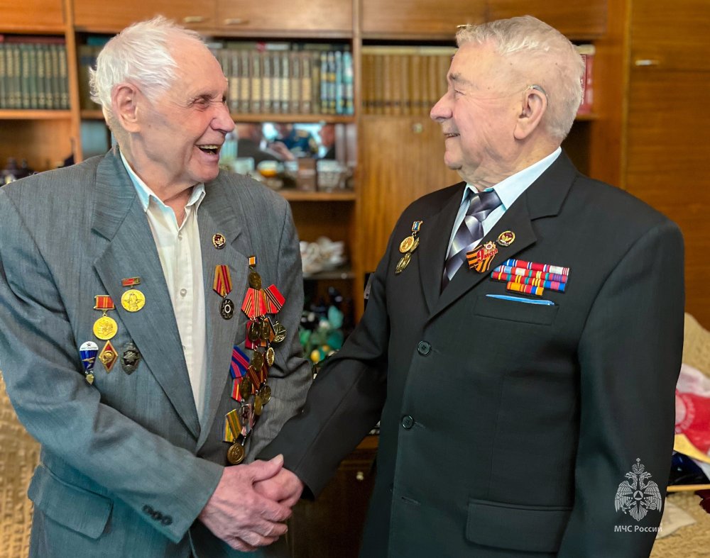 От лица руководства МЧС России и Академии поздравления передали председатель Совета ветеранов Академии Вельгелим Михайлович Губин и курсанты вуза.