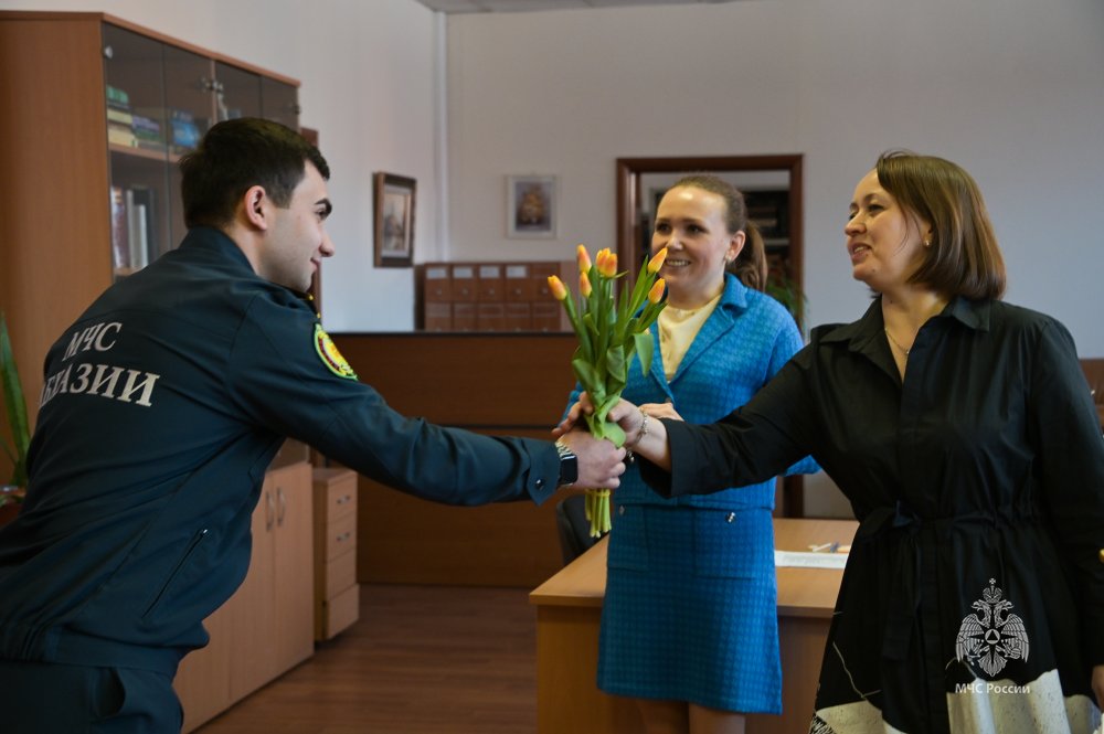 Сегодня с самого утра атмосферу весны и праздничного настроения для прекрасной половины Академии создали уже при входе на работу – на КПП cаксофонисты Показательного оркестра МЧС России исполнили самые нежные и романтичные музыкальные произведения.