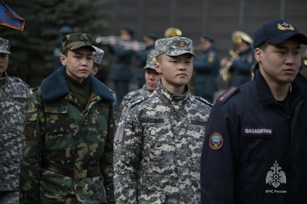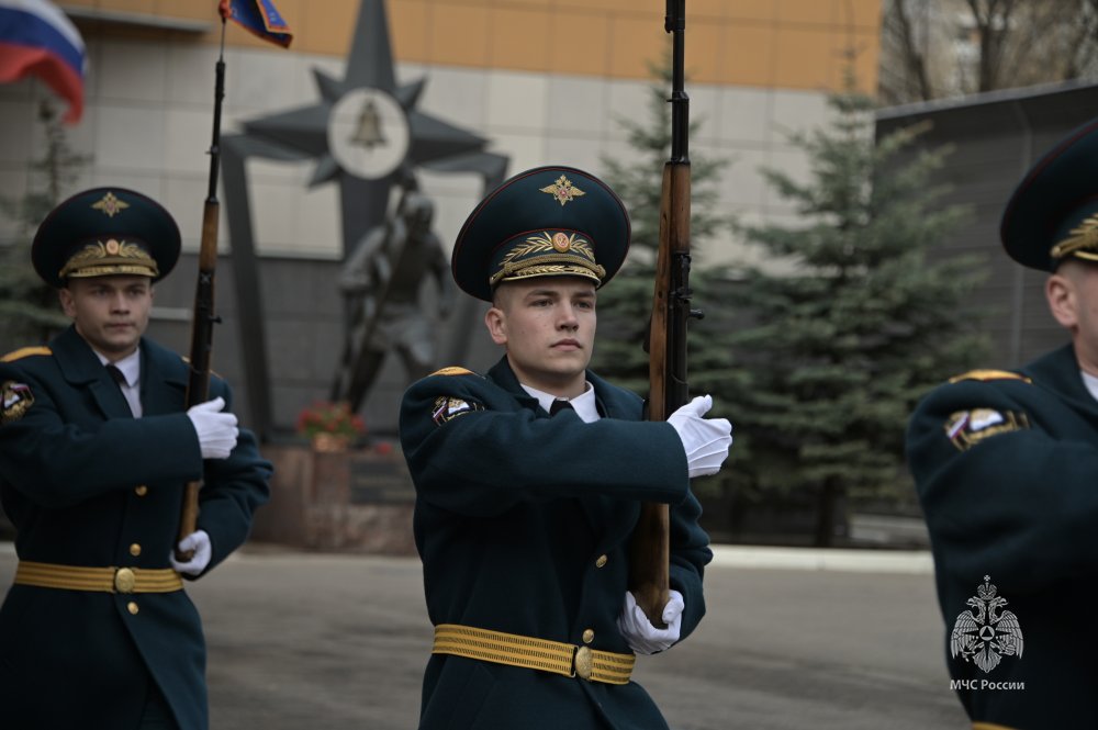Мероприятие началось с поднятия Государственного флага и исполнения Гимна Российской Федерации. За высокие результаты в спортивных соревнованиях по пожарно-спасательному спорту и рукопашному бою почетное право поднять Государственный флаг Российской Федерации было предоставлено курсантам факультета пожарной и техносферной безопасности Валерии Горбачевой и Валерию Чкалову.