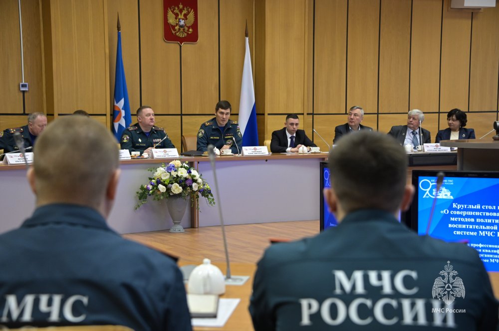В рамках мероприятия состоялся круглый стол по вопросам совершенствования форм и методов политической и воспитательной работы в системе МЧС России. В нем приняли участие заместитель начальника Академии по работе с личным составом Александр Гусев, заместитель директора Департамента кадровой политики ведомства Борис Тамбовцев, заместитель председателя Центрального совета ветеранов МЧС России Сергей Шапошников, а также руководство Института и профессорско-преподавательский состав вузов.