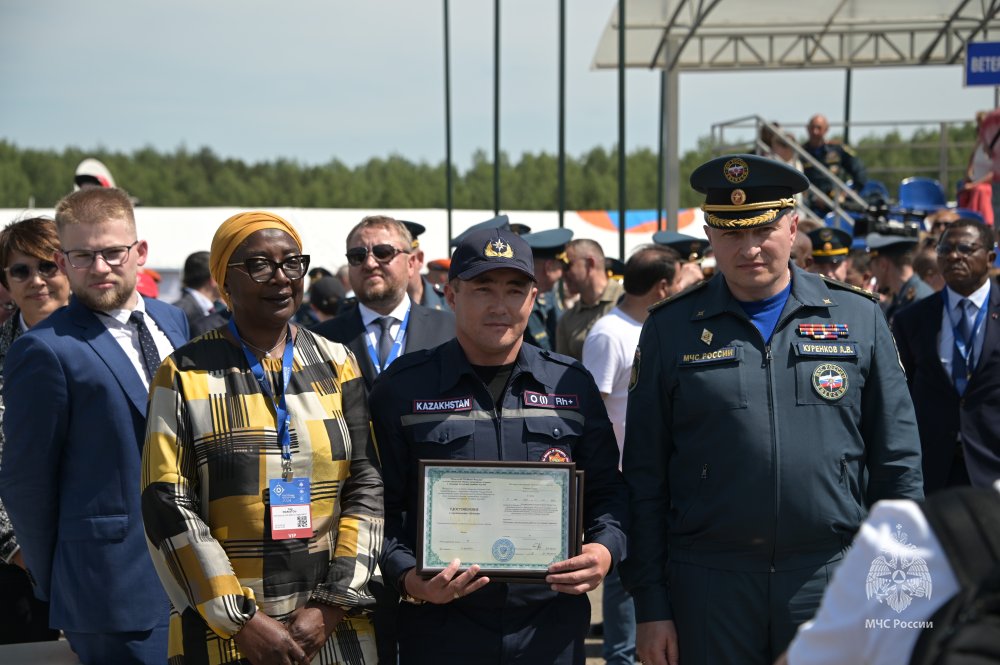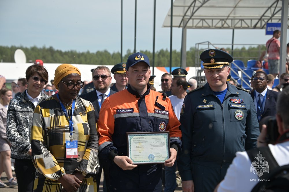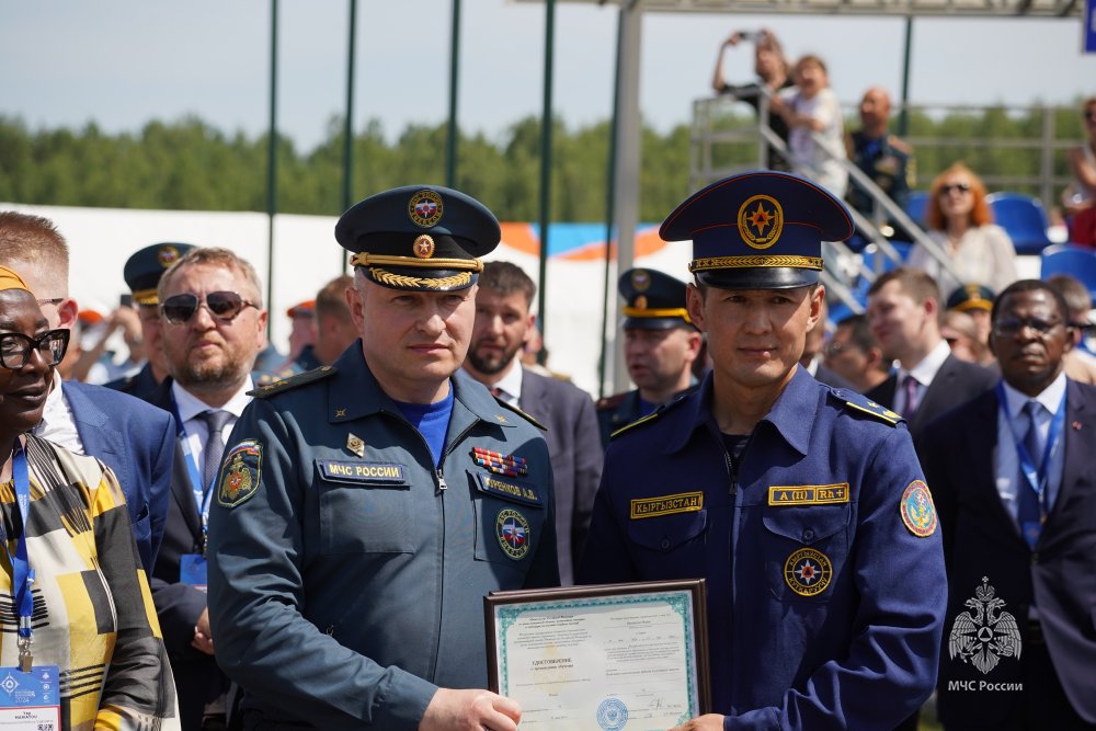 Глава МЧС России Александр Куренков вручил удостоверения и сертификаты о завершении обучения по программе специального курса «Поисково-спасательные работы в условиях завалов» пятнадцати слушателям из Азербайджана, Киргизии и Казахстана.