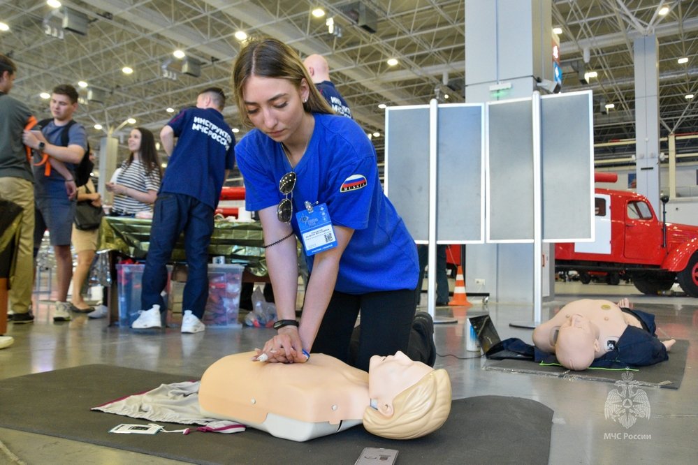На учебной точке Салона «Оказание первой помощи» участникам квеста предстояло отработать на манекене навык проведения сердечно-легочной реанимации. Командам также необходимо было на время надеть боевую одежду пожарного, потушить условный пожар при помощи огнетушителя, составить ориентировку на пропавшего человека и выполнить другие различные физические упражнения эстафеты.