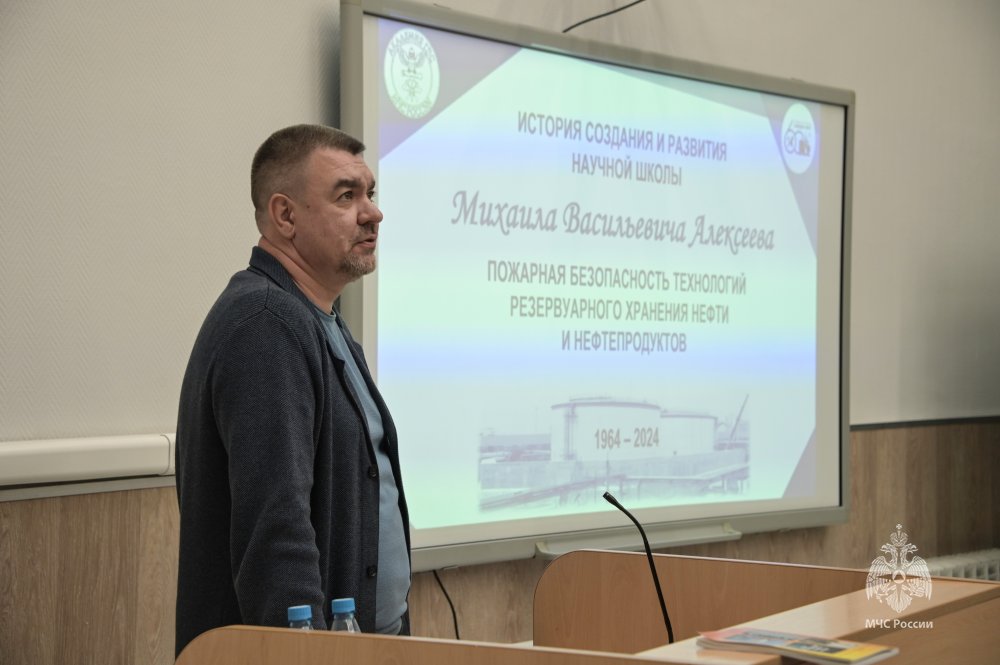 Начальник кафедры ПБТП Ольга Агеева рассказала о перспективных направлениях развития кафедры и дисциплины. С докладом об истории создания и развития научной школы Алексеева «Пожарная безопасность технологий резервуарного хранения нефти и нефтепродуктов» выступил профессор кафедры Сергей Швырков. На сегодняшний день в рамках научной школы, основанной Михаилом Алексеевым, защищено 4 работы на соискание ученой степени доктора технических наук и 52 диссертации на соискание ученой степени кандидата технических наук, опубликовано более 500 научных статей, получено более 40 авторских свидетельств и патентов.