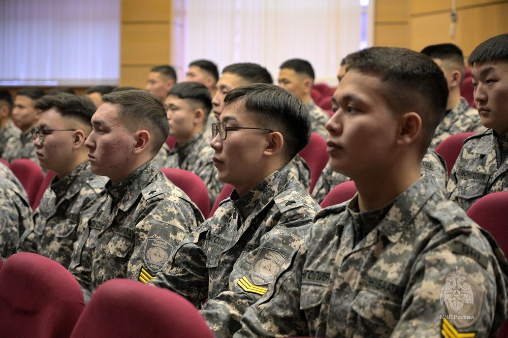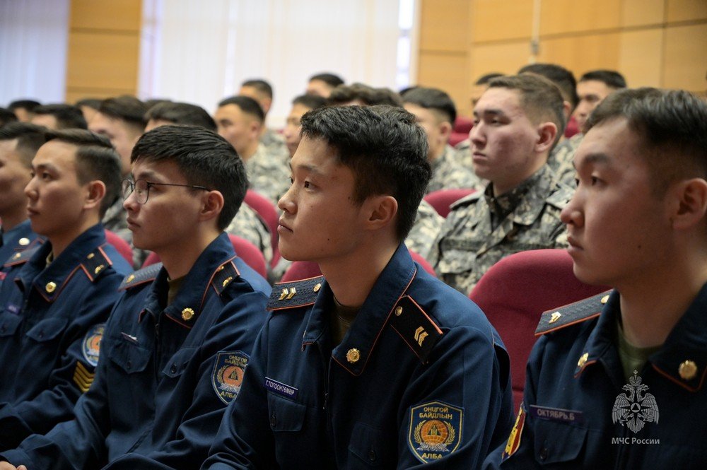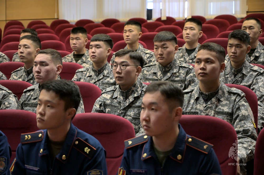 В конференц-зале почетные гости встретились с обучающимися Института подготовки иностранных граждан Академии из Монголии. На сегодняшний день по программам бакалавриата и магистратуры обучаются 46 представителей Государственного агентства по ЧС Монголии. На встрече курсанты и слушатели Института подробно рассказали о том, как протекает их учебная, служебная, воспитательная и спортивная деятельность.