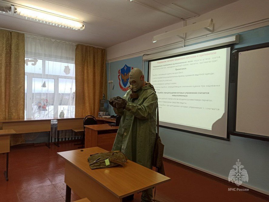 В ходе занятий кадеты изучили основы радиопереговоров и примерили на себе общевойсковой защитный костюм.