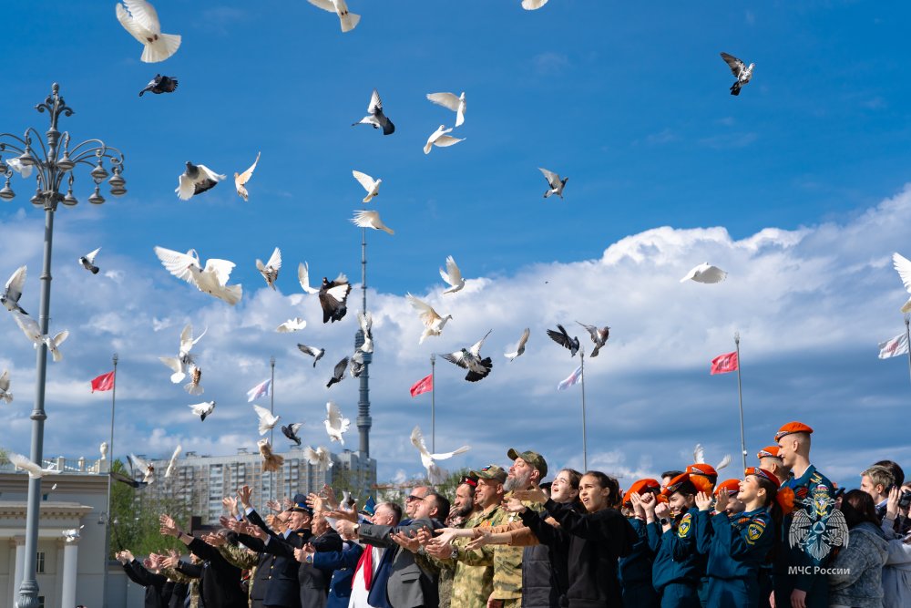 Обучающиеся Академии ГПС МЧС России приняли участие во Всероссийской акции «Голубь мира – Голубь Победы!», приуроченной к 80-летию Великой Победы. Вместе с участниками СВО и молодежью Москвы курсанты и студенты вуза выпустили в небо 80 белых голубей в знак памяти о Героях Великой Отечественной войны.
