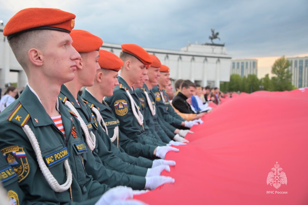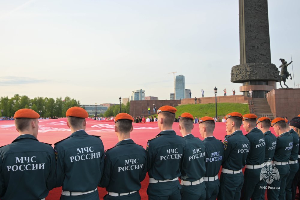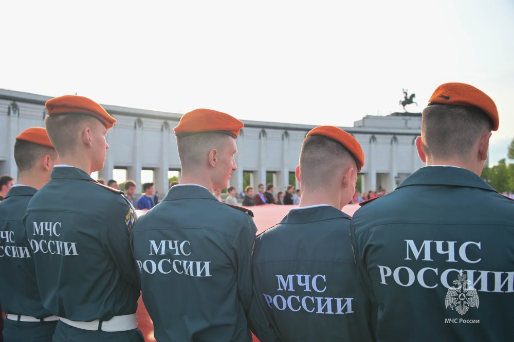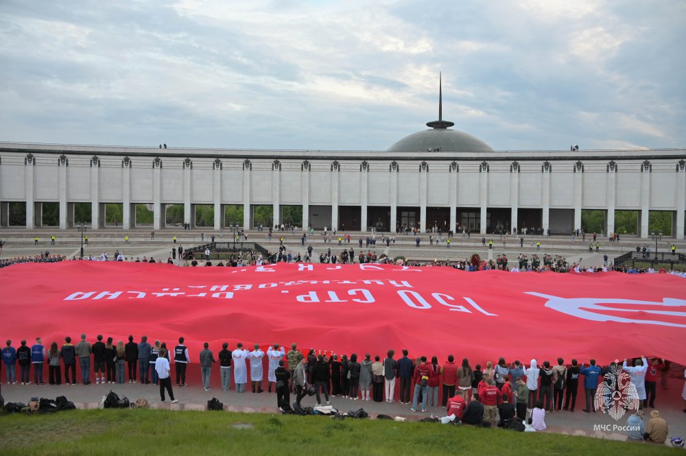 В Москве мероприятие началось с возложения цветов к Вечному огню на Поклонной горе, после чего более тысячи участников акции развернули знамя, размером 65 метров в длину и 35 метров в ширину, и весом 350 килограммов.