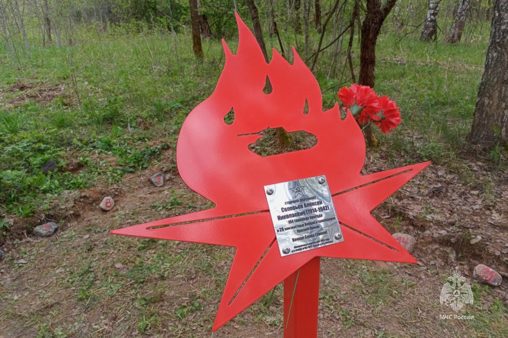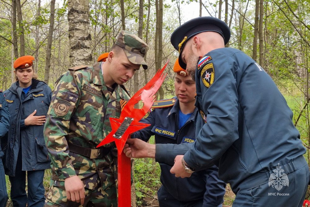 Поисковики Академии ГПС МЧС России установили памятник советским воинам, которые были найдены отрядом «ФИПО-АГПС» в 2024 году на урочище Плоское, в рамках Вахты Памяти.