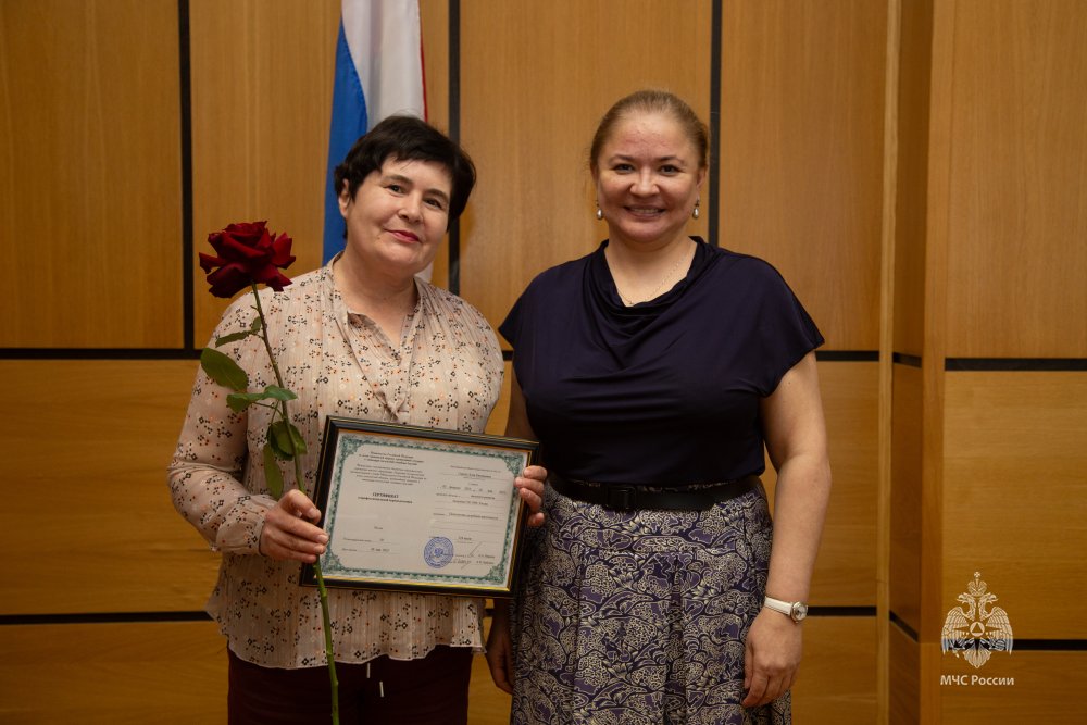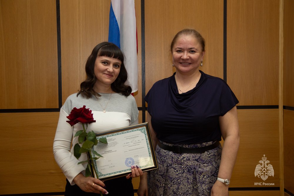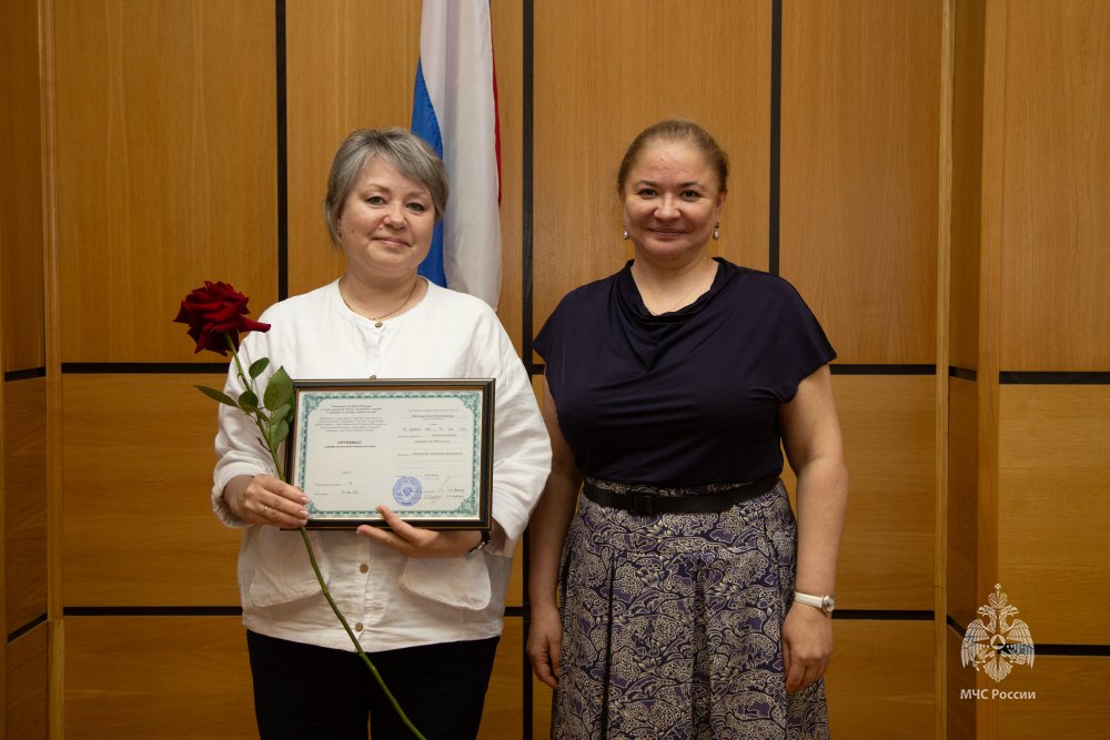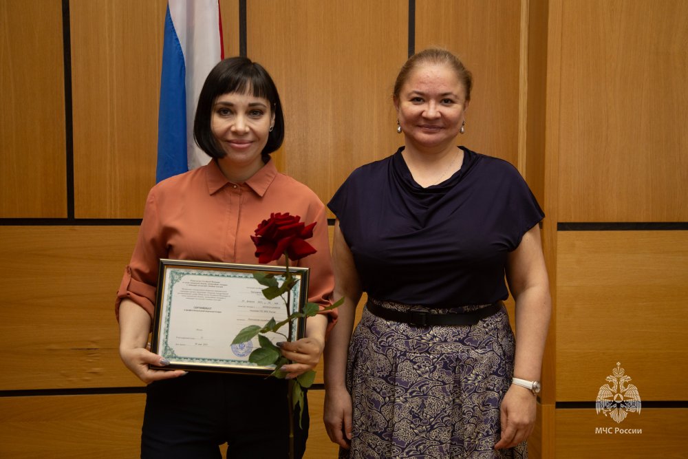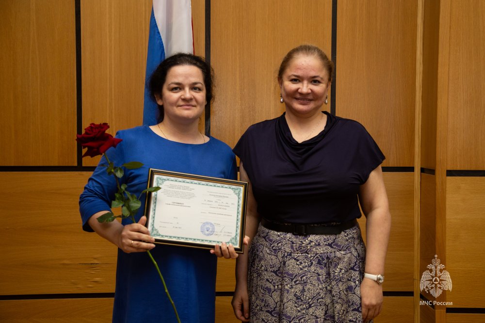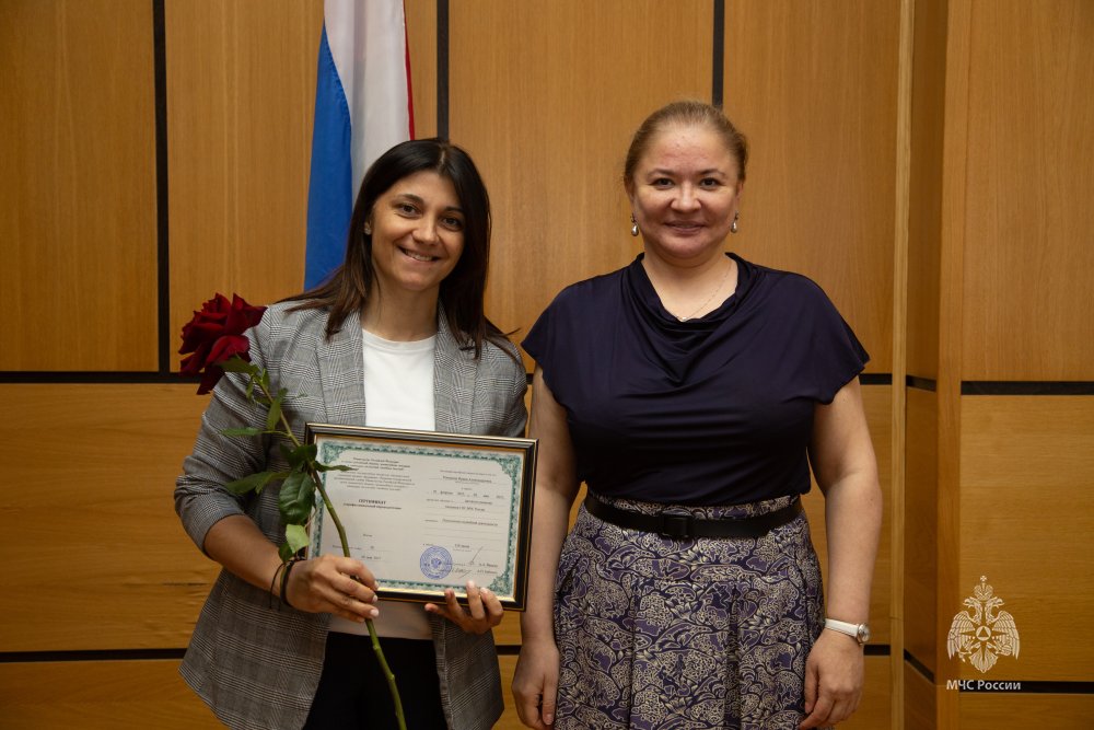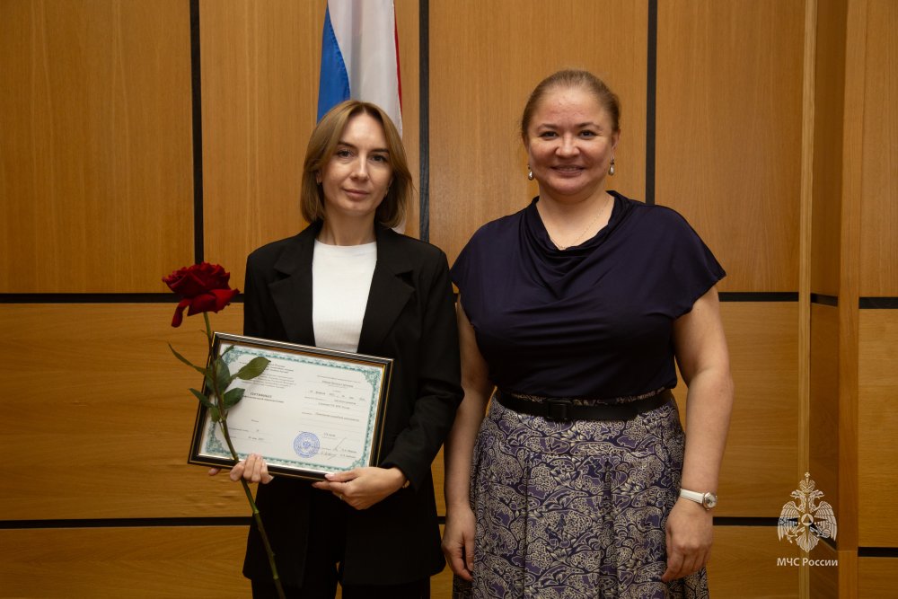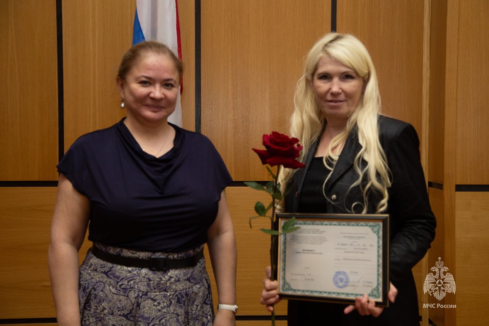 В торжественной обстановке дипломы о профессиональной переподготовке вручила директор Центра экстренной психологической помощи МЧС России Юлия Шойгу.