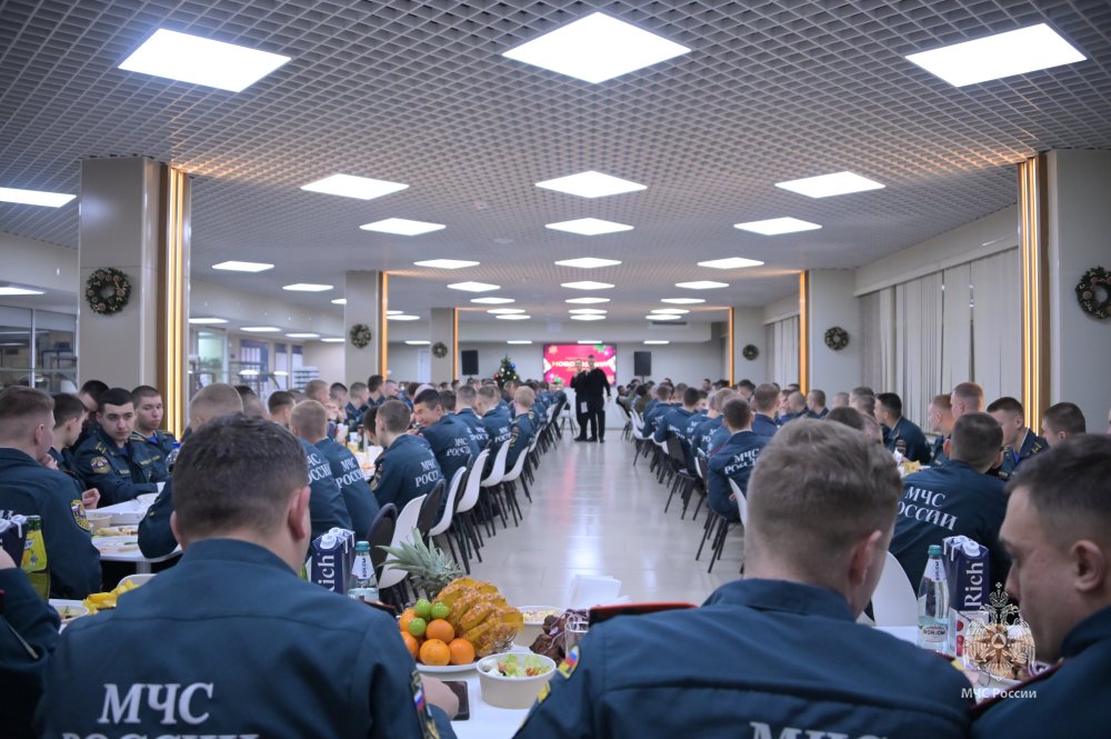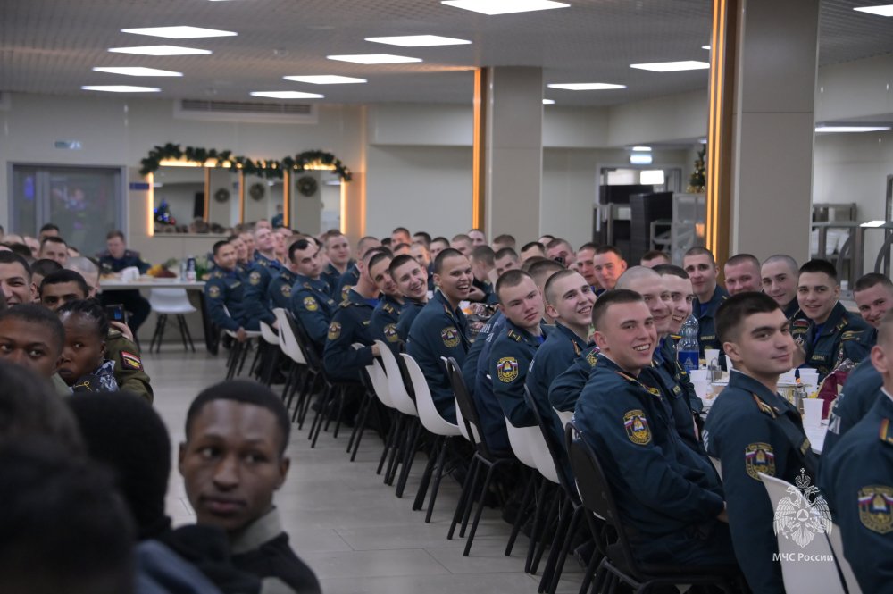 Офицеры и курсанты Академии ГПС МЧС России встретили новый, 2026 год. В новогодний вечер был организован праздничный ужин, где царила дружественная атмосфера. Активисты курса подготовили для товарищей праздничную программу с конкурсами и викторинами, а также видеопоздравлениями от родных и близких.