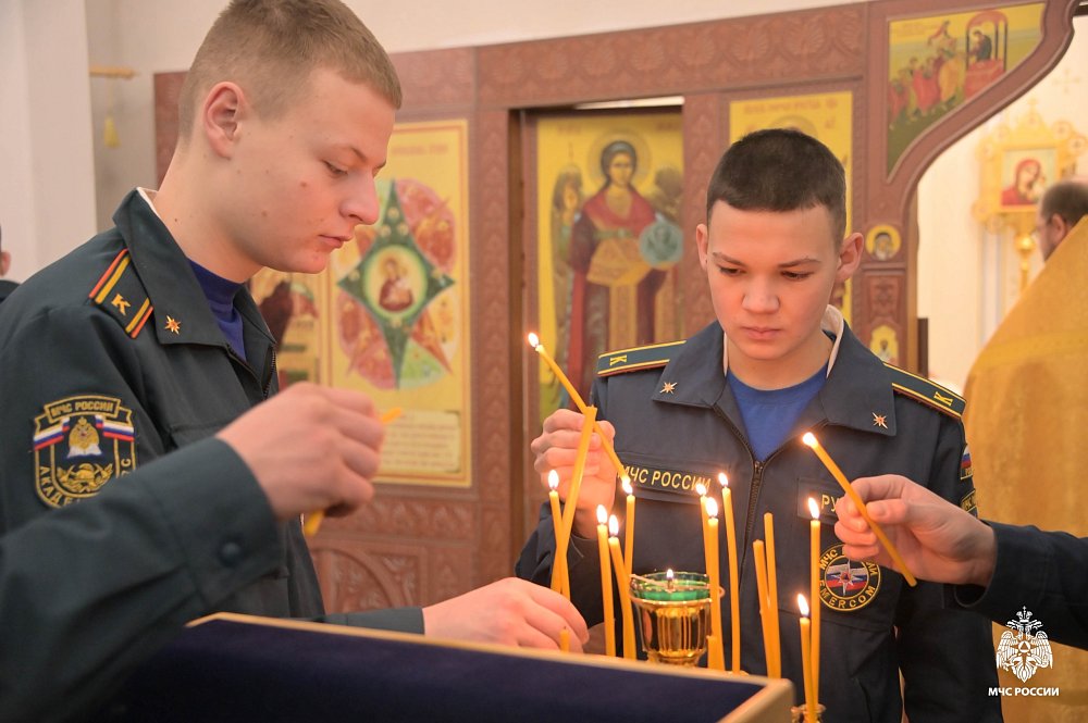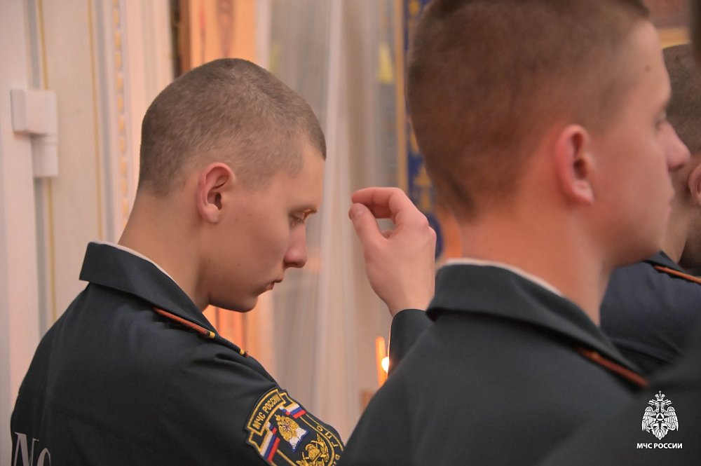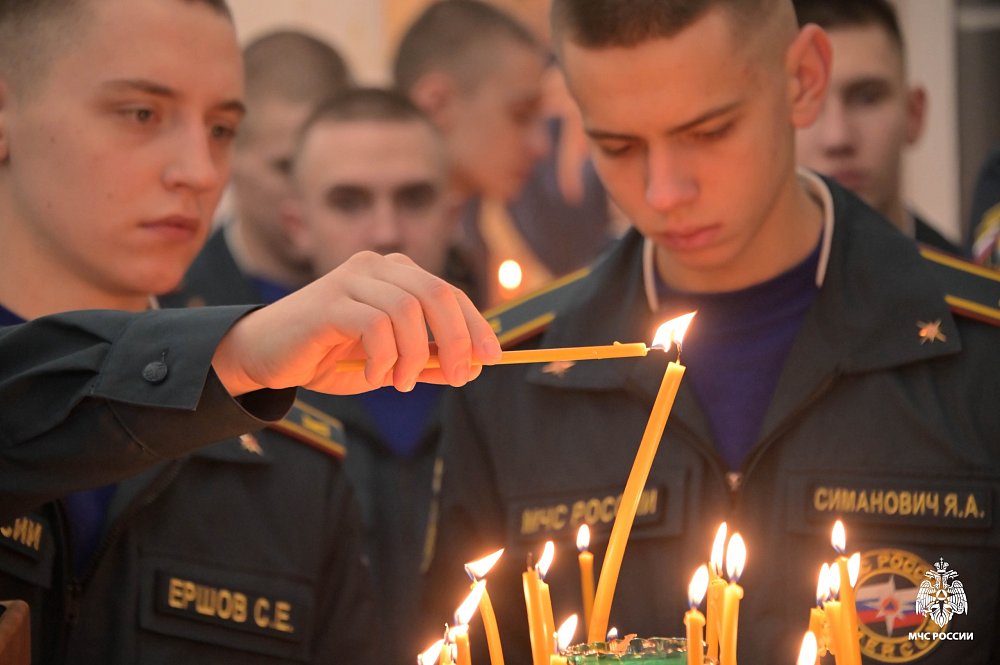 В храме великомученика Георгия Победоносца при Академии ГПС МЧС России прошла рождественская литургия, которую возглавил клирик храма Тихвинской иконы Божией Матери в Алексеевском иерей Андрей. Он напомнил курсантам вуза о том, что светлый праздник Рождества воплощает в себе любовь и надежду, общее единение и веру в чудо Господне.