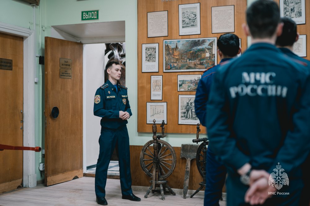 Курсантам были представлены уникальные экспонаты разных эпох. Особое внимание было уделено залу Героев, где будущим специалистам МЧС России рассказали о выдающихся подвигах огнеборцев, совершенных как в военное, так и в мирное время.