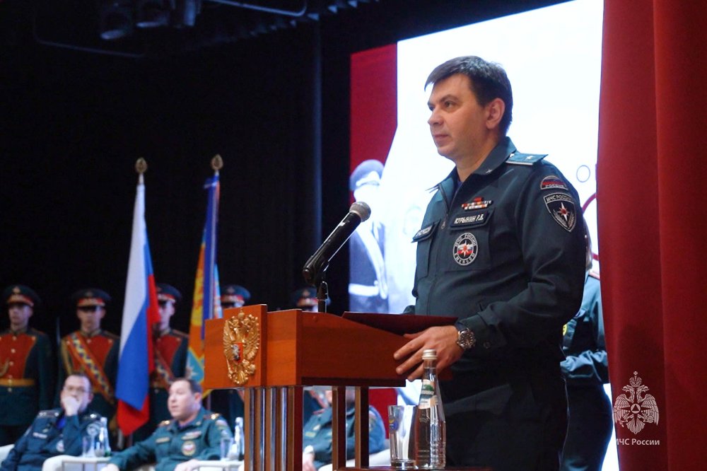 «Сегодня мы собрались по особенному поводу - приветствуем нового начальника Академии Государственной противопожарной службы. Убежден, что это событие станет новой вехой в развитии как самой Академии, так и системы образования, и науки нашего Министерства в целом. С большим удовольствием представляю вам нового руководителя — Зеленина Валерия Викторовича. Убежден, что Академия получает руководителя, в котором гармонично соединяются две важнейшие ипостаси: боевой офицер, знающий реальную работу подразделений изнутри, и педагог, понимающий ценность качественного образования», — отметил Роман Курынин.