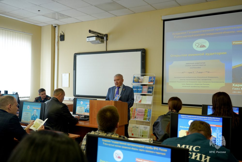 Сегодня в Ордена Почета Академии ГПС МЧС России состоялось торжественное открытие именной аудитории в память о профессоре кафедры гражданской обороны, защиты населения и территорий Гаязе Харисовиче Харисове.