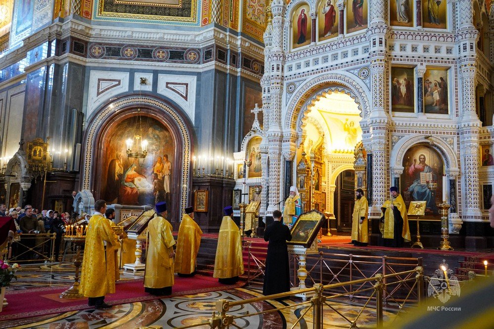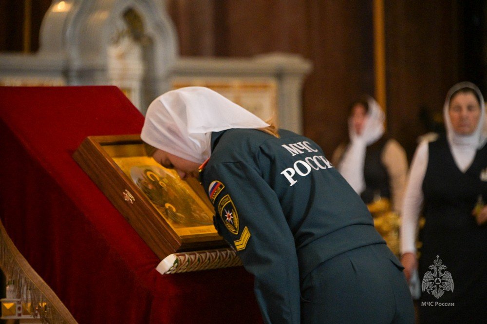 Благодарственные молебны иконе о пожарных и спасателях, крестные ходы и акции проходят в этот день ежегодно по всей России. В традиционном молебне, состоявшемся сегодня в Московском Кафедральном Соборе Храма Христа Спасителя, приняли участие руководство и сотрудники чрезвычайного ведомства, а также ветераны, офицеры и курсанты Ордена Почета Академии ГПС МЧС России.