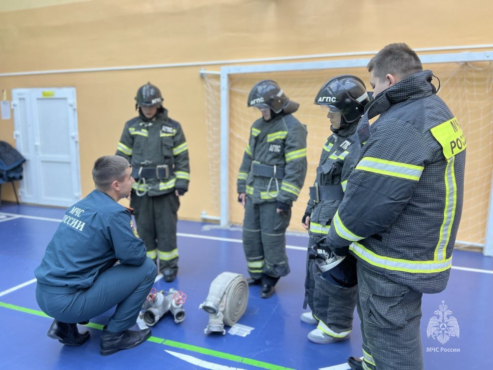 Завершающим этапом образовательного цикла являлись профессиональные пробы, в рамках которых кадеты продемонстрировали приобретенные навыки по оперативному надеванию боевой одежды пожарного и привели боевое развёртывание на условно обозначенный очаг пожара.