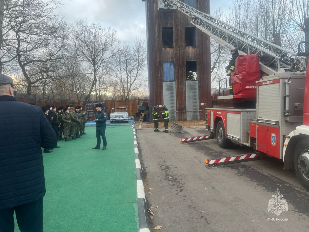 В рамках практической составляющей кадеты посетили пожарно-спасательные части Московского гарнизона, где познакомились с порядком несения караульной службы, пожарно-спасательной техникой и снаряжением.